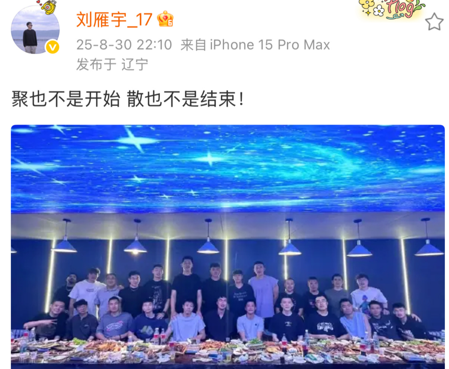 昨天辽宁全队进行聚餐,因为31号就是注册最后时间段了,他们还要和球队签约合同。这一次聚餐之后,刘雁宇张镇麟赵率舟正式告别。